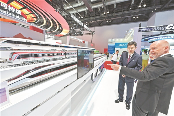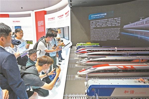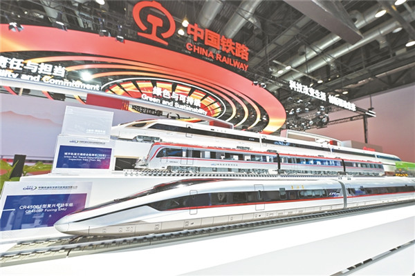 展臺上的CR450復(fù)興號動車組模型十分亮眼。王 瑋 攝