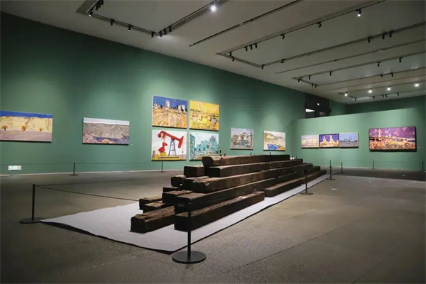 邁進(jìn)展廳,現(xiàn)場(chǎng)以灰綠色、赭石色為基調(diào),營(yíng)造出綠皮火車般的懷舊氛圍,觀眾一步入展廳便仿佛踏上時(shí)光旅程。